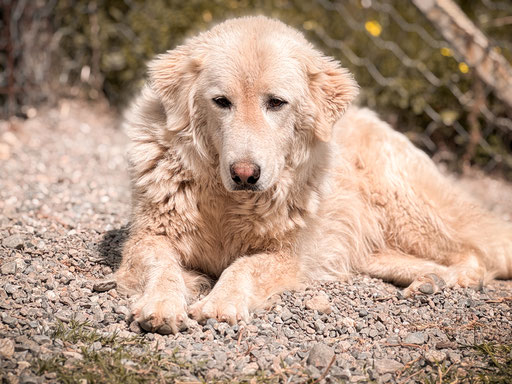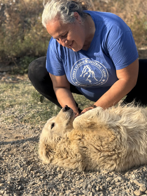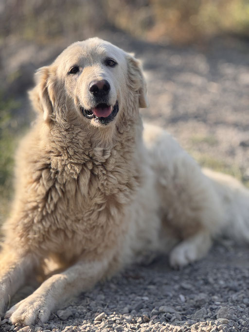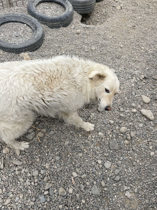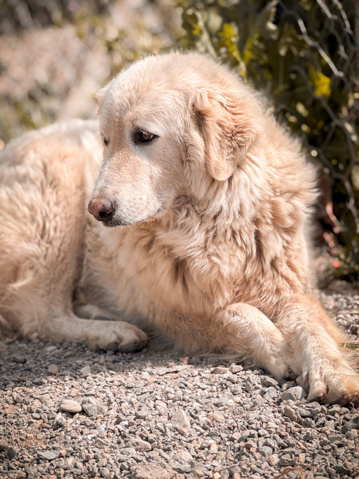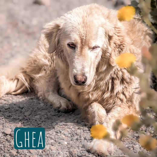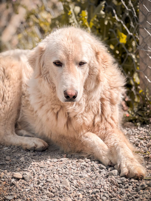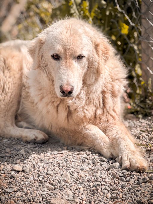 Ghea wurde auf den Straßen Kalabriens gefunden. Vermutlich wurde sie ausgesetzt und hat vielleicht als Herdenschutzhund nichts getaugt. Aber, wir wissen es nicht.