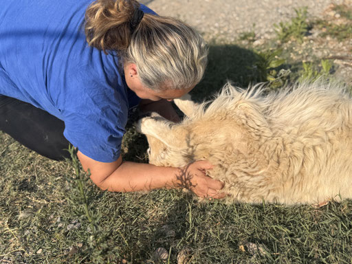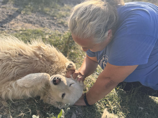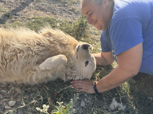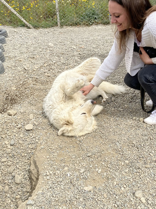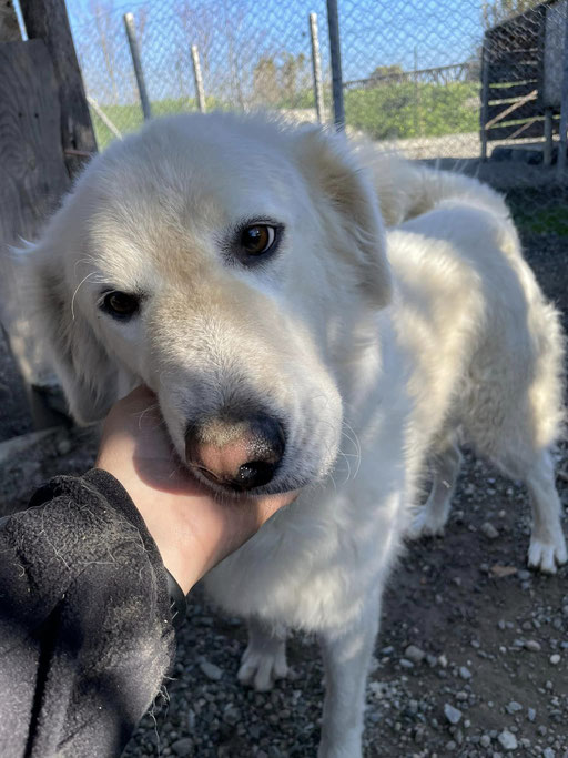 Ghea ist eine total liebe, verschmuste Maremmano-Mix Hündin, die sich nichts sehnlicheres wünscht, als endlich eine Familie zu finden, die sie wertschätzt. Wir denken, sie würde sich so gut in einer Familie tun, die geduldig und liebevoll mit ihr arbeiten und ihr das Hunde 1x1 beibringen. Ghea ist im besten Alter, noch so vieles lernen zu können. Fremden gegenüber ist Ghea im Rifugio schnell aufgeschlossen und lässt sich gerne streicheln und kuscheln. Aber von wem, entscheidet sie Maremmanotypisch gerne selbst.